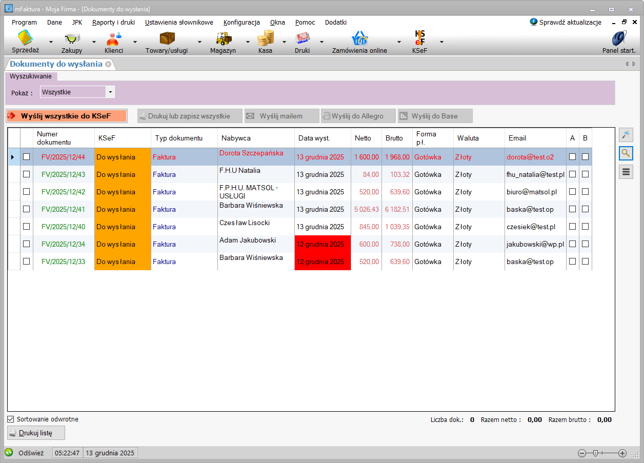 - szybko wysyłać dokumenty do tej pory niewysłane (pojedynczo lub grupowo),