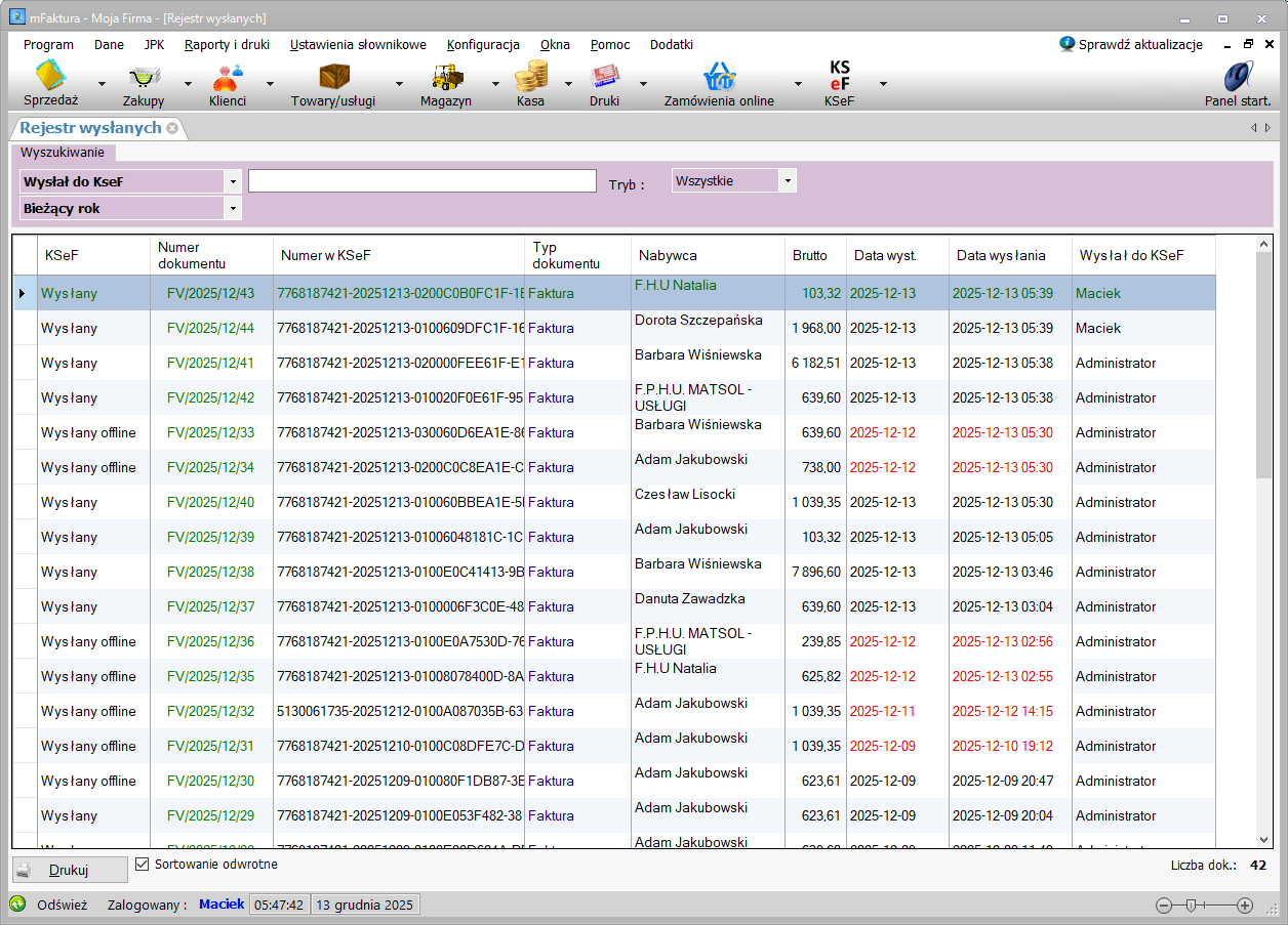 - dzięki niemu sprawdzisz kiedy i jakie dokumenty zostały wysłane do KSeF,