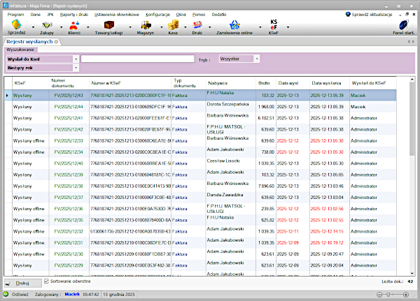 - łatwo sprawdzisz czy wystawiona faktura w programie wylądowała w KSeF,