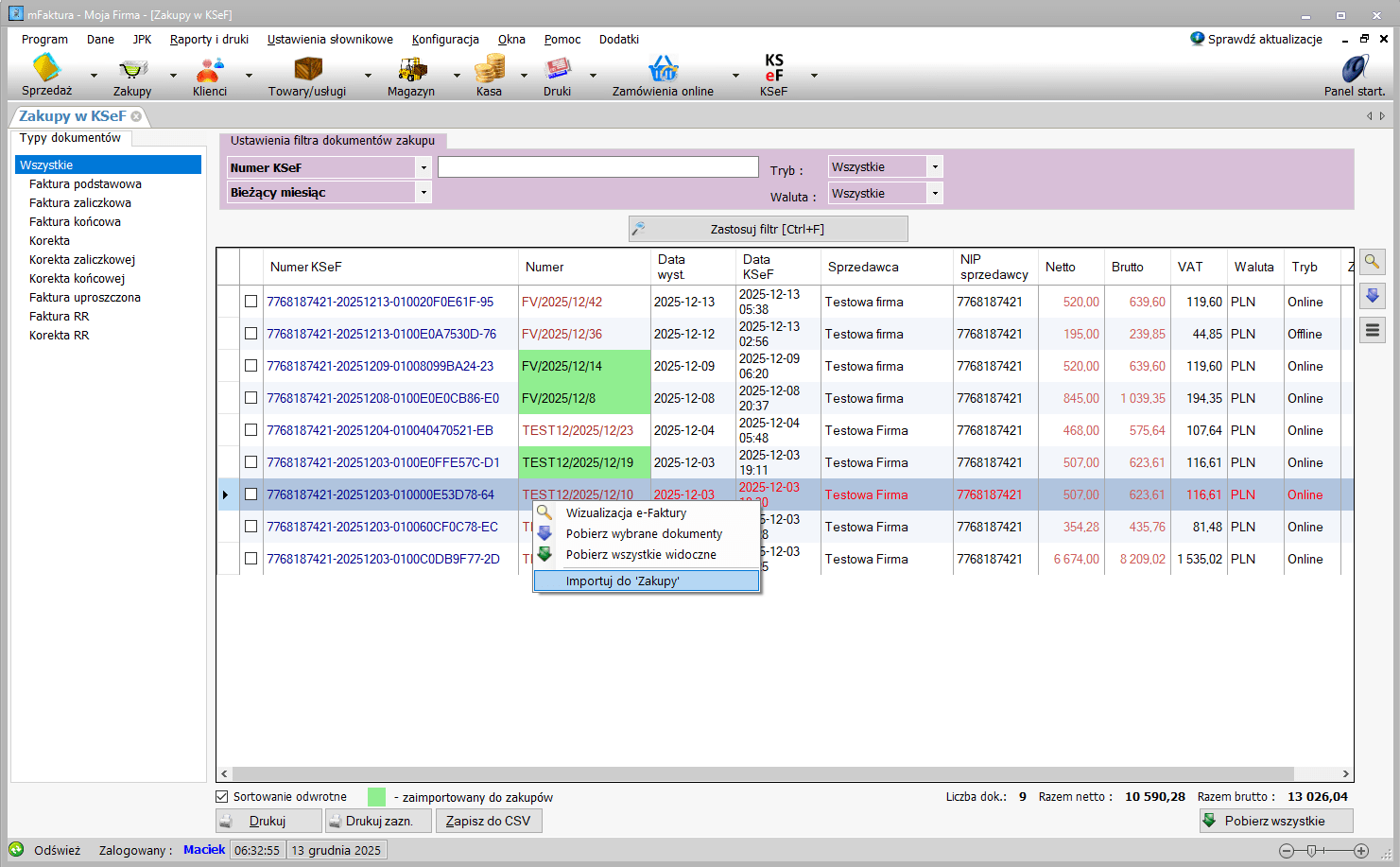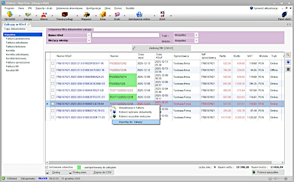 - moduł „Zakupy w KSeF”