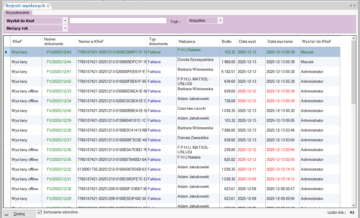 - dzięki niemu sprawdzisz kiedy i jakie dokumenty zostały wysłane do KSeF,