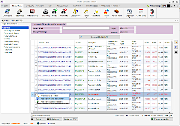 - przygotujesz i wydrukujesz lub zapiszesz listę zaznaczonych dokumentów, np. po to by przekazać informację do księgowości, które faktury zakupu mają być księgowane,